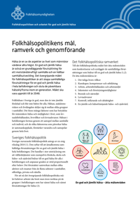 Publicerad:Uppdaterad:Faktabladet innehåller en snabb och översiktlig ingång till Sveriges folkhälsopolitik och arbetet för god och jämlik hälsa.