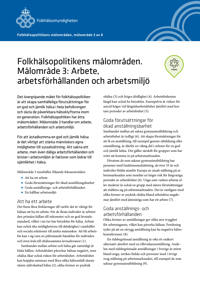 Ta del av en kortfattad och summerande översikt om målområde tre, arbete, arbetsförhållanden och arbetsmiljö, i faktabladet: