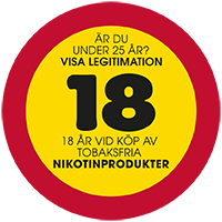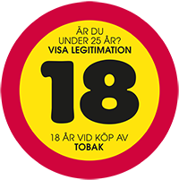 Publicerad:Beställ dekalen: "Är du under 25 år? Visa legitimation. 18 år vid köp av tobaksfria nikotinprodukter".