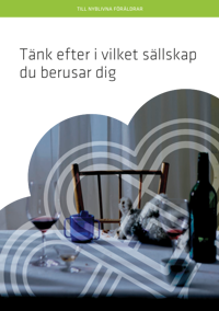Publicerad:Den här foldern vänder sig till föräldrar som nyligen fått barn och beskriver hur små barn kan uppleva det när vuxna dricker alkohol. Den uppmanar föräldrar att fundera på om det finns någon anledning att ändra sina alkoholvanor när man blivit förälder.