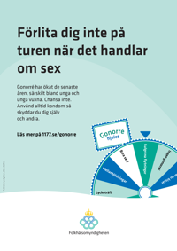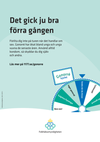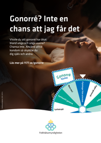 Publicerad:Affisch är riktad till unga och unga vuxna för att öka medvetenheten om att gonorré har ökat i Sverige under de senaste åren och spridits till nya och yngre grupper.