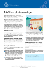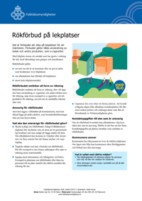 Publicerad:Uppdaterad:Faktabladet informerar bland annat om den rökfria utomhusmiljön och vad den som är ansvarig för rökförbudet ska göra.