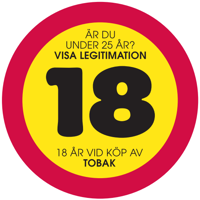 Publicerad:Beställ dekalen: "Är du under 25 år? Visa legitimation. 18 år vid köp av tobak".