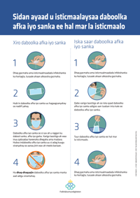 Publicerad:I denna affisch på somaliska visar vi hur du använder munskydd på ett korrekt sätt. Rätt använda kan munskydd vara ett komplement till övriga riskreducerande åtgärder för att hindra smittspridning.
