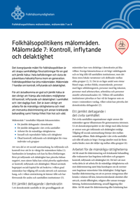 Faktabladet innehåller en snabb och översiktlig ingång till målområde 7: Kontroll, inflytande och delaktighet. Syftet med bladet är att beskriva: