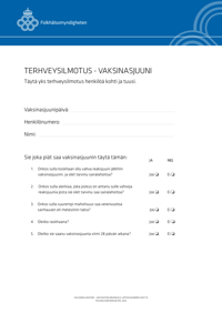 Denna blankett på meänkieli kan användas av regionerna i samband med vaccination. Den kan fyllas i digitalt och skrivas ut på papper.
