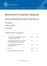 Denna blankett på ukrainska kan användas av regionerna i samband med vaccination. Den kan fyllas i digitalt och skrivas ut på papper.
