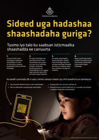 Affischen på somaliska riktar sig till vårdnadshavare och presenterar tips och råd för barns och ungas skärmanvändning.