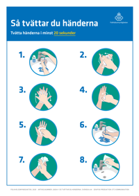 Affischen i A4 beskriver vad och hur du ska göra för att dina händer ska bli rena. Skriv gärna ut och sätt upp den på ställen du anser lämpliga.