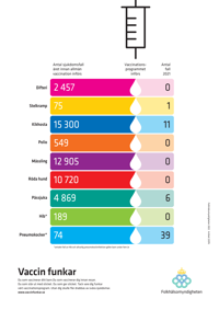 Affischen Vaccin funkar illustrerar effekten av det allmänna vaccinationsprogrammet för barn i Sverige. Den är lämplig att sättas upp på mottagningar inom hälso- och sjukvården för att öka medvetenheten om hur stor betydelse vaccinationer har för hälsan.