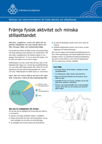 Publicerad:Rekommendationer för fysisk aktivitet och stillasittande för alla befolknings- och åldersgrupper i Sverige. Finns på flera språk.