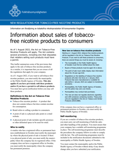 Published:The information sheet summarises certain provisions that apply to the sale of tobacco-free nicotine products. It is important that you as a retailer know all the rules that apply to your business.