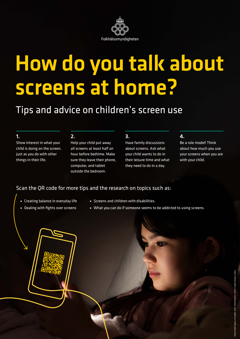 Published:This leaflet offers practical tips and advice for parents and guardians on children’s screen use. It also includes questions that you can use when talking about screen use in your family.