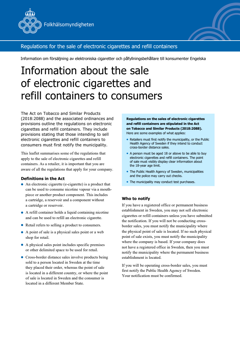 Published:This information sheet is intended for those who sell or intend to start selling electronic cigarettes and refill containers to consumers (retailers).